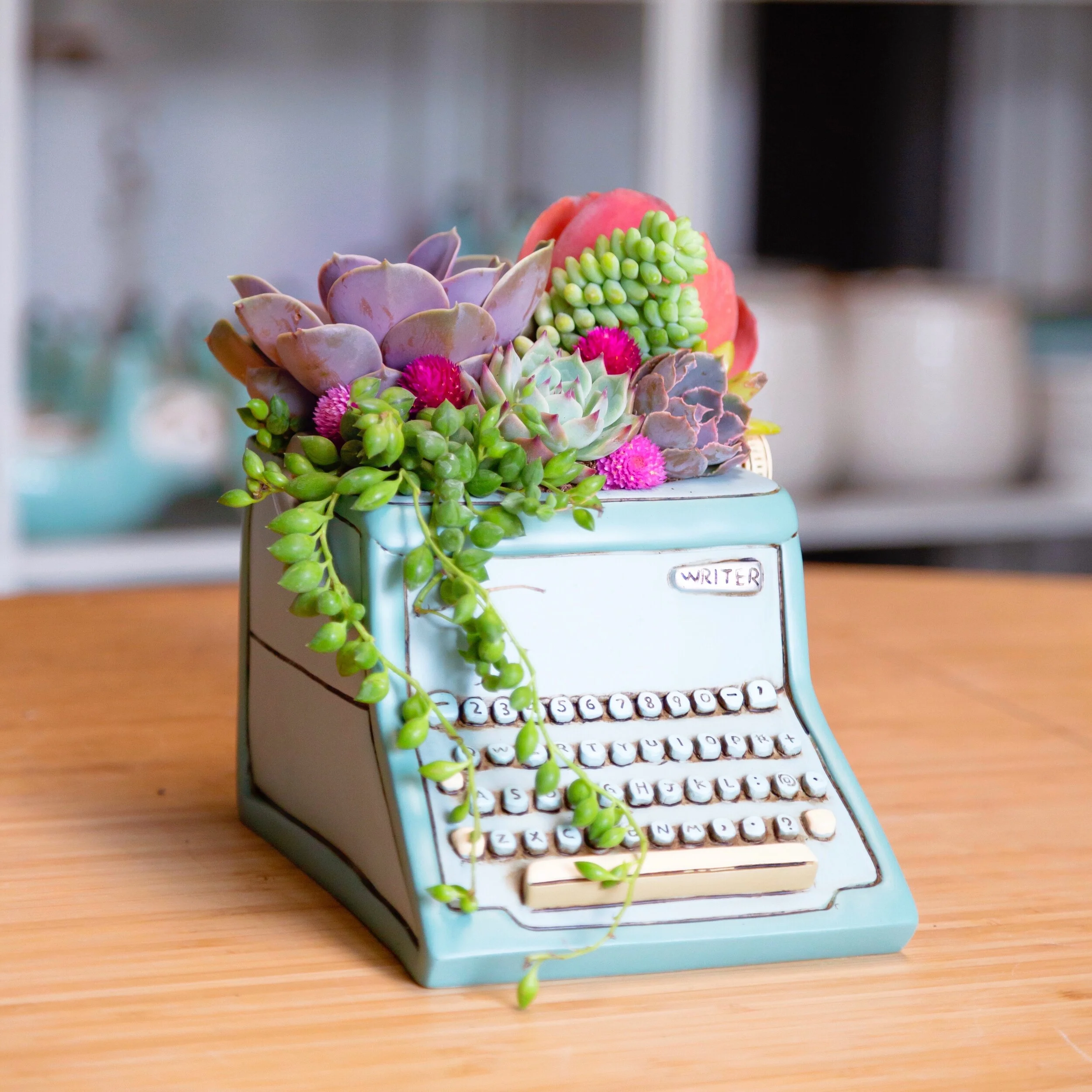 Succulent Pumpkins Miniature $35.00 Large White Fairytale Succulent Pumpkins ~10" Wide - Local Pickup Only $150.00 Large Peachy Succulent Pumpkins 10-11" Wide - Local Pickup Only $150.00 Large Grey Green Fairytale Succulent Pumpkins ~10-12" Wide $150.00 Succulent Pumpkins Orange Sparkler $45.00 Minty Geometric Centerpiece (Local Pickup) $125.00 Mama Bear Arrangement $50.00 Disco Small Bowl Arrangements $40.00 Blue Typewriter (large) $85.00 Sold Out Sunshine $48.00 Terrazzo Centerpiece (Local pickup only) $100.00 Black Typewriters from $48.00 72hr Heat Pack (Shipping) $3.00 Black/Brown Weenie Dog $65.00 Teal Rainbow Fish $48.00 Sold Out Heart Shaped Succulent Arrangements from $55.00 Nurse Arrangements $48.00 Sold Out Mermaid Lady Planter with Arrangement $48.00 Sold Out Baby Fox $48.00 Sold Out White Cat - Pretty Kitty Arrangement $48.00 Sold Out Frida Arrangement $48.00 Sold Out Red/Brown Dachshund Weenie Dog $65.00 Sold Out Medium Cinderella Succulent Pumpkins $65.00 Sold Out Baby Piggy $48.00 Sold Out Pink Iridescent Arrangements from $45.00 Sold Out Brunette Lady $50.00 Sold Out Candy Pink Compote Arrangement $50.00 Sold Out Vintage Sewing Machine $48.00 Sold Out White and Pink Stoneware Compote Arrangement (Local Pickup Only) $125.00 Sold Out