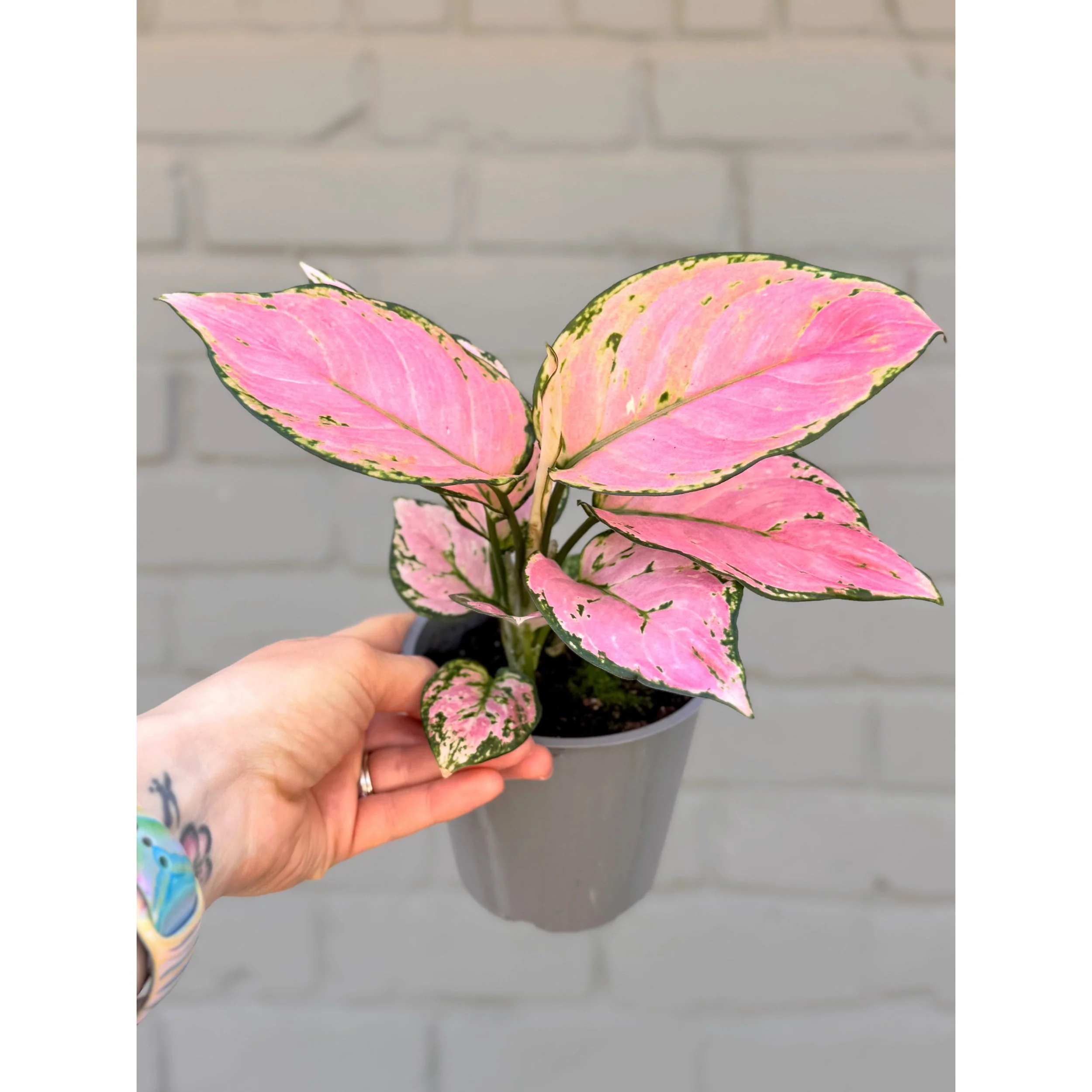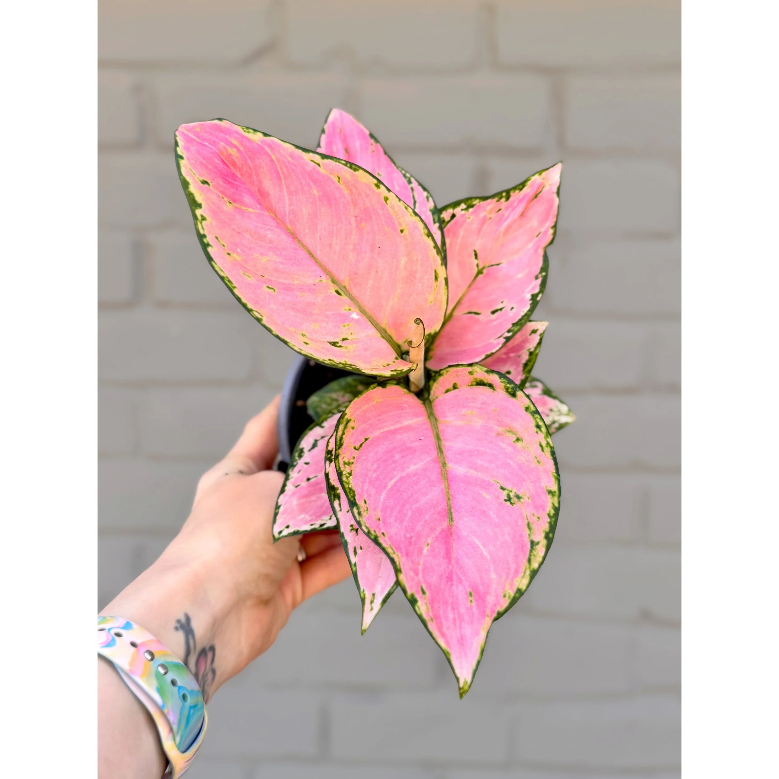 Aglaonema Pink/Red Hybrid ‘Chanel’ in a 6" nursery pot. This Chinese Evergreen features beautiful pink stems and pink, red, yellow and green patterned leaves. ‘Chanel’ is close in appearance to Two Tone Moonstone and Sparkling Sarah- like if those two varieties had a baby! This plant doubles as a mega air purifier so it is perfect for any space to add color and improve your air quality!