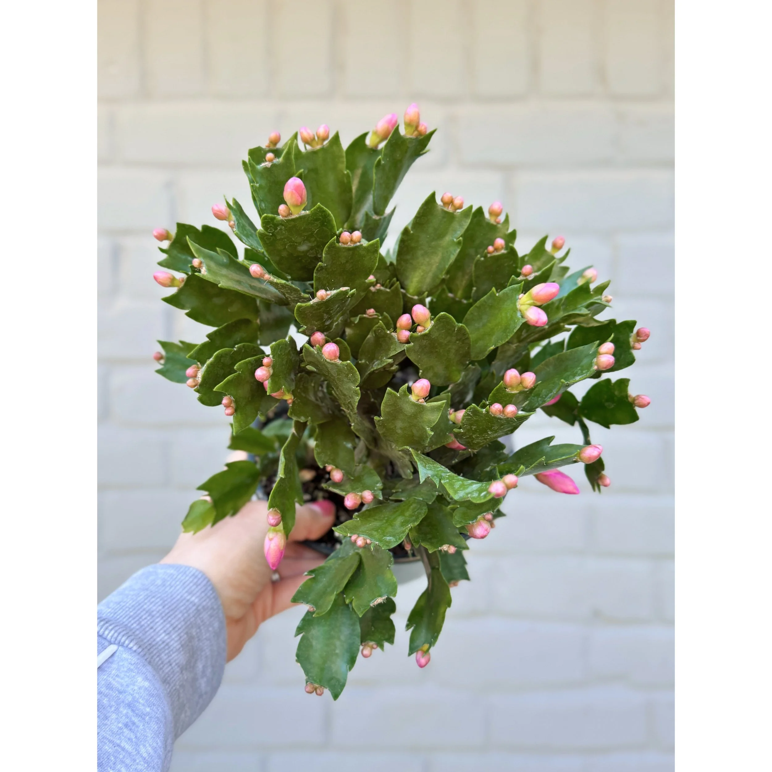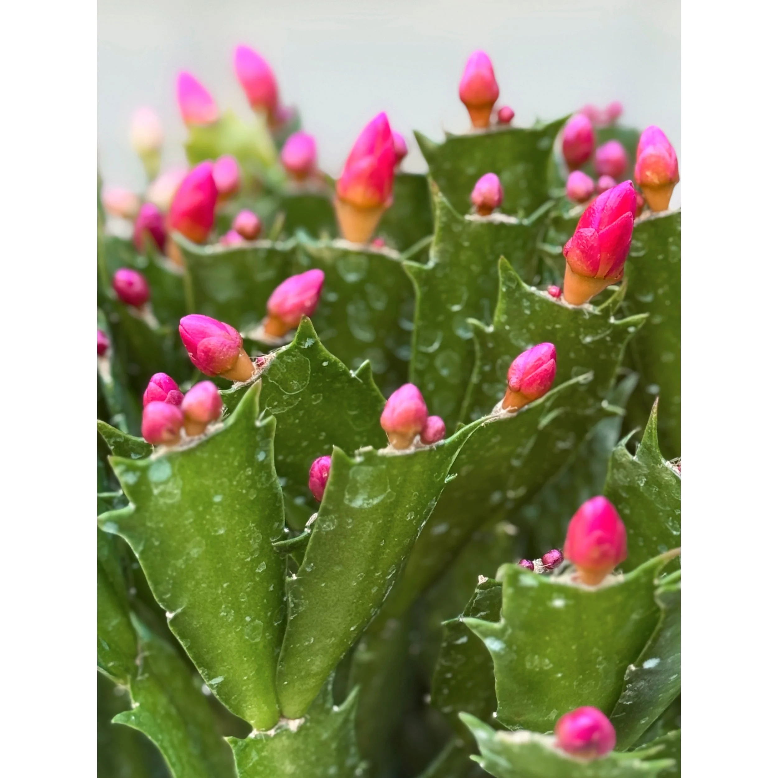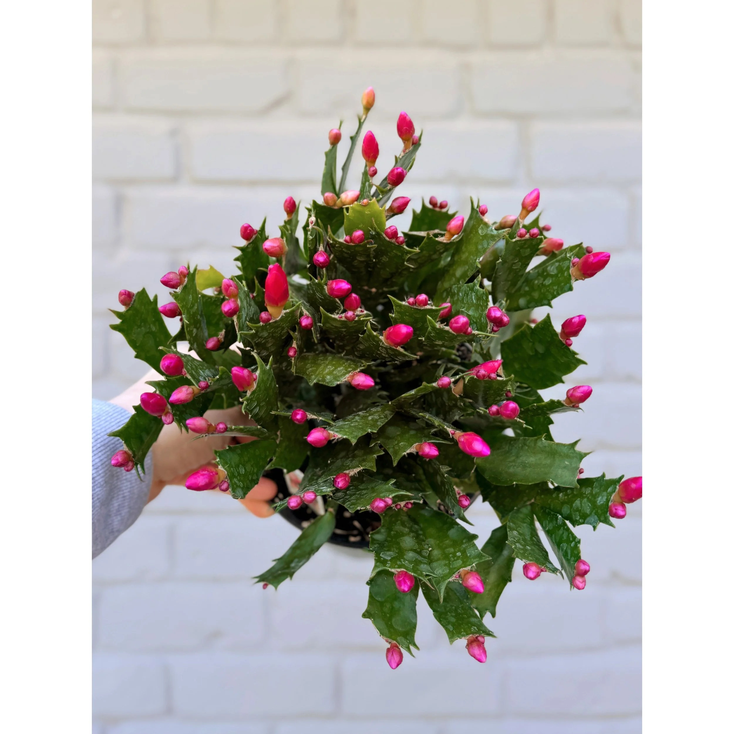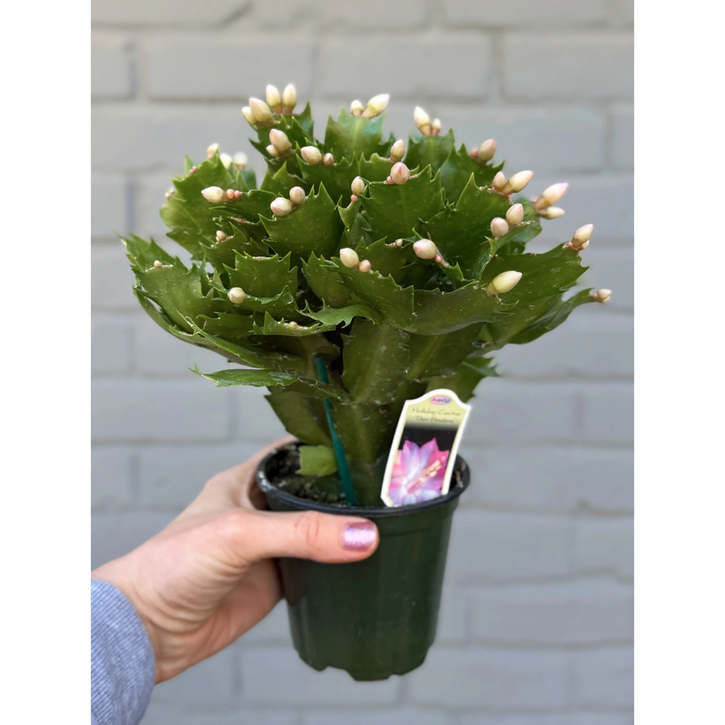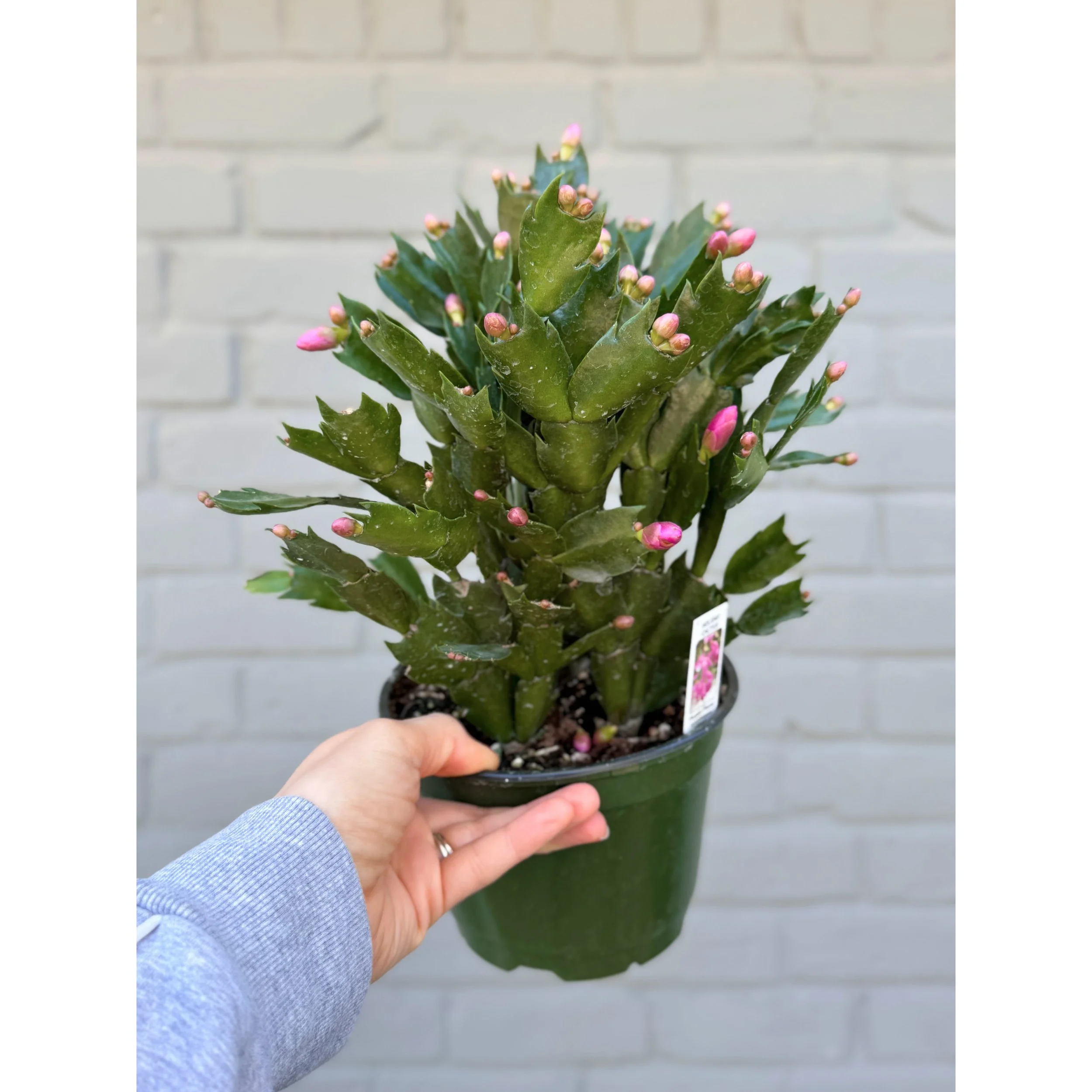 Beautiful Holiday Cactus - Schlumbergera Hybrid ‘Purple’ in a 4” nursery pot. The blooms on this cactus are a beautiful deep pink purple with a white center.