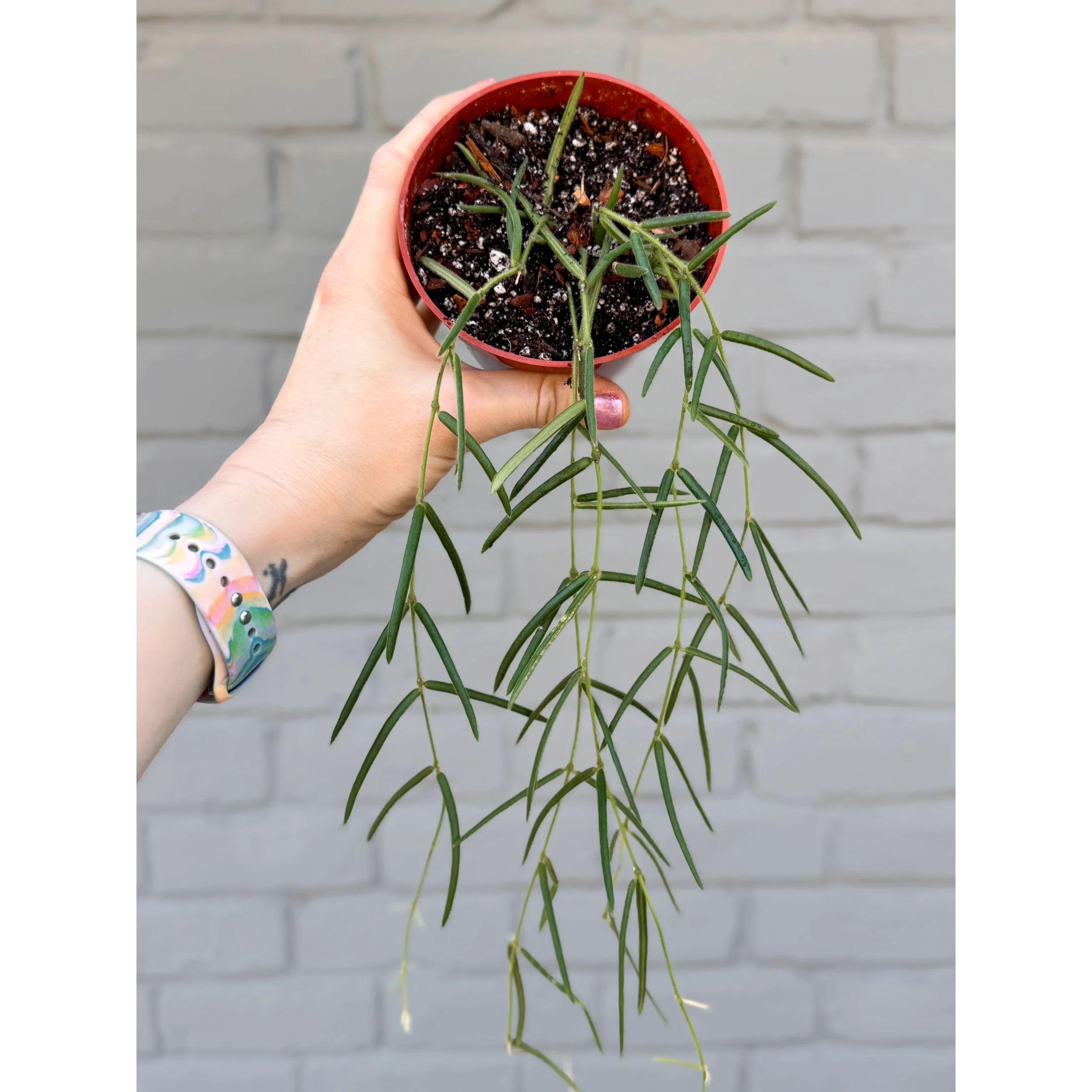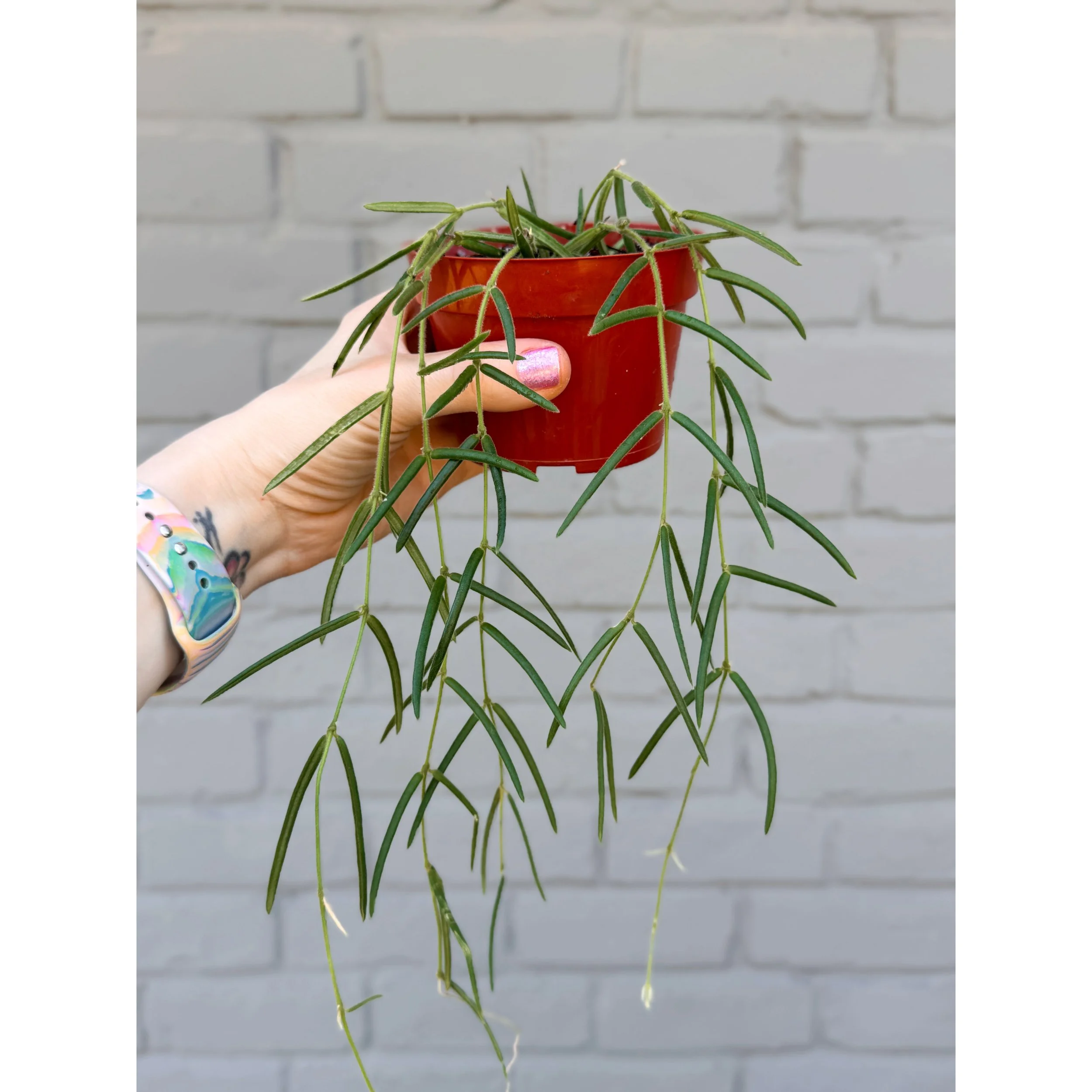 Hoya DS70 Variegated in a 4” nursery pot. This is a rare hoya that we are so excited to bring into the shop! Each pot is nice and full like the one in the picture. This hoya is similar in appearance to Hoya sp aff Burtoniae although the leaves of the DS 70 present a prominent center vein. The variegated variety showcases a vibrant streak of yellow down the middle of the leaves.