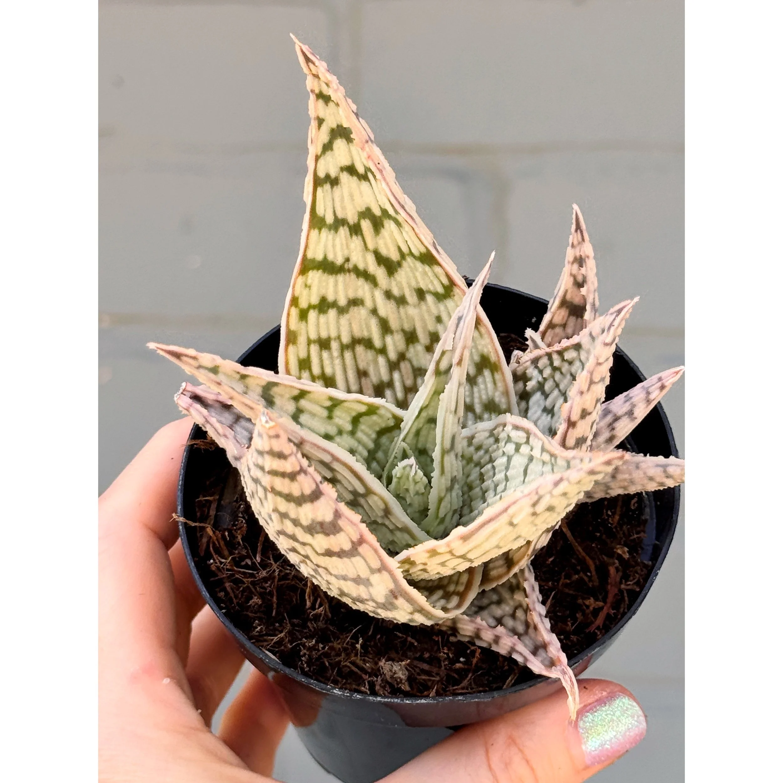 Hoya Carnosa Krinkle 8 (aka Ripple) in a 4” nursery pot. Krinkle 8 is a hybrid of Hoya Carnosa and Carnosa Compacta. The blooms on this hoya smell like chocolate!