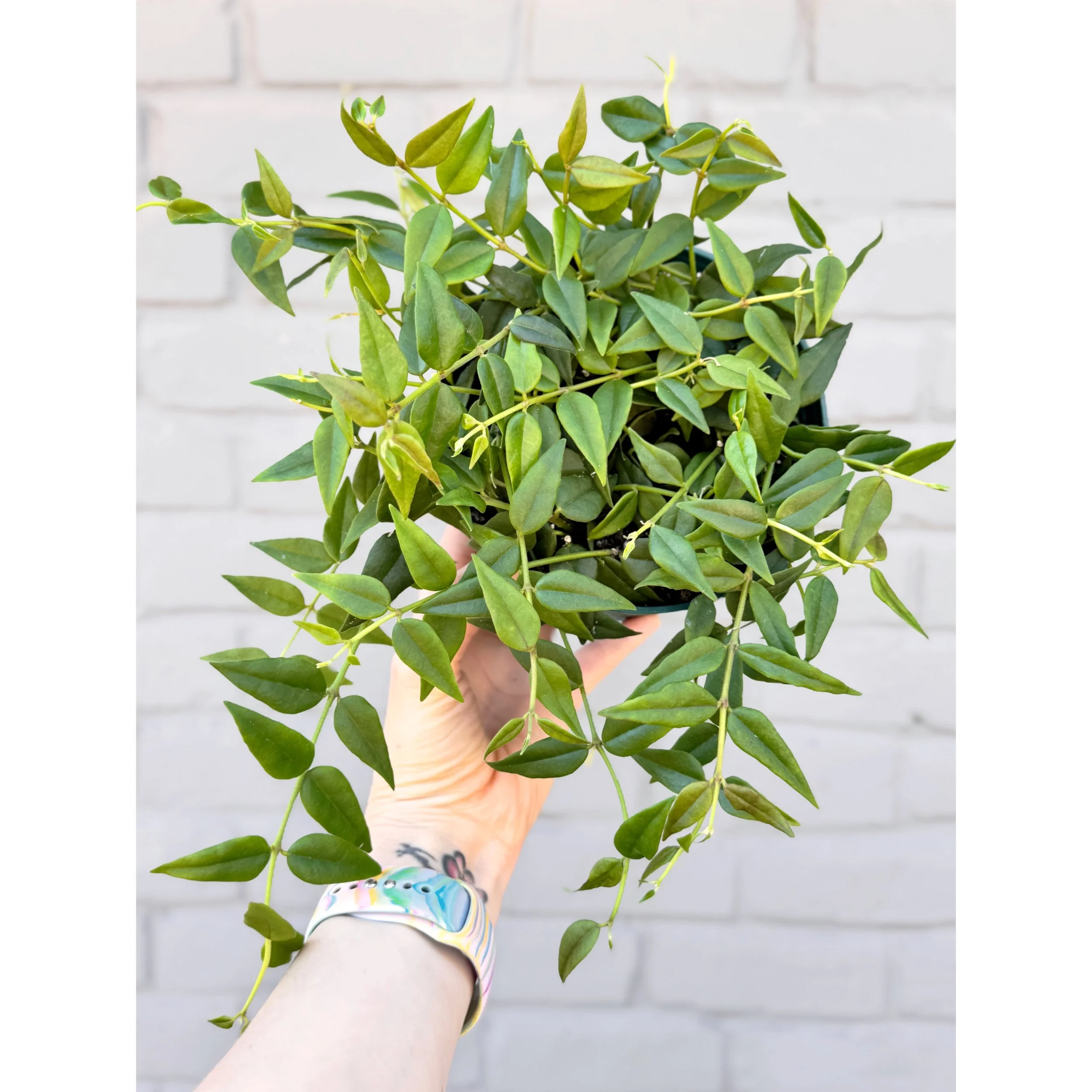 Hoya Linearis in a 6” hanging basket. Meet the Hoya Linearis – your new favorite trailing hoya with delicate, grass-like leaves that bring a soft, whimsical vibe to any space. This trailing beauty loves bright, indirect light and only needs watering when its soil feels dry. Perfect for hanging baskets or high shelves where it can dangle and show off its unique charm. Low maintenance, high style – the Hoya Linearis adds a playful touch of green that’s sure to brighten your day!