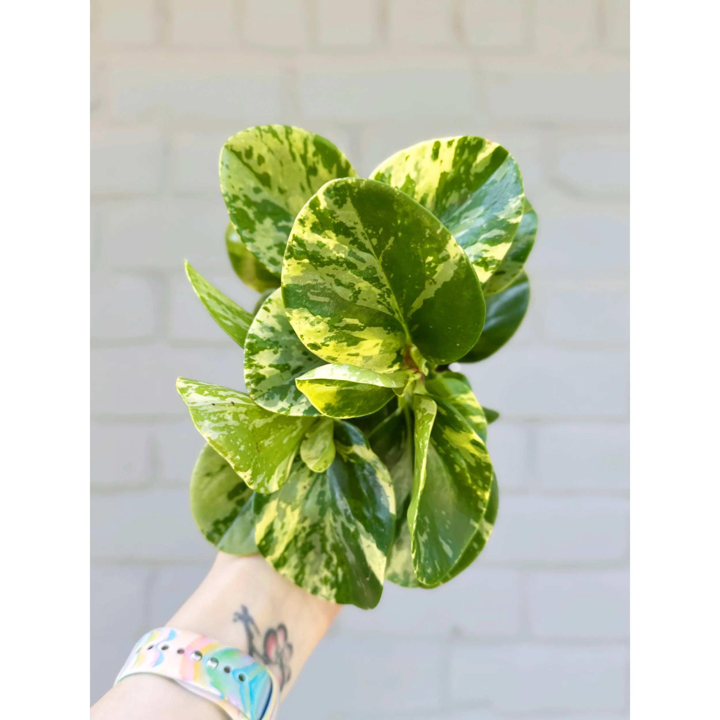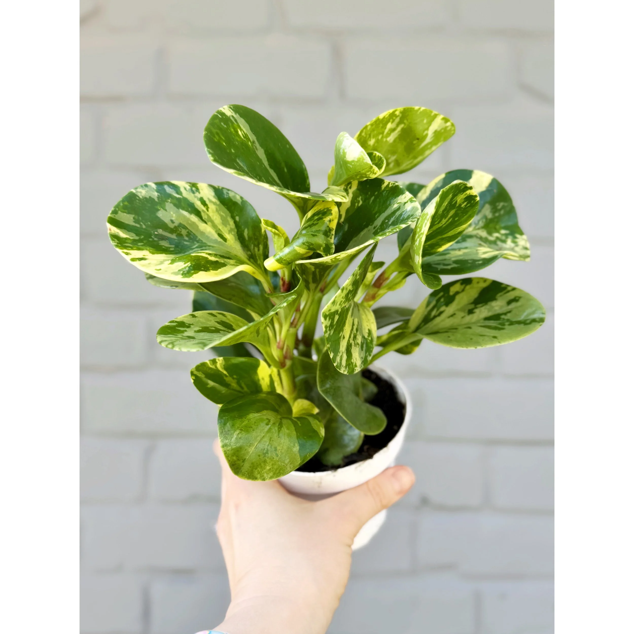 Peperomia Variegated Teardrop 'Pixie Lime' in a 4” nursery pot. With its strikingly bright green leaves edged in a silvery mint, this charming houseplant brings a refreshing touch of cheer to your home. Compact and low-maintenance, it's the perfect companion for those new to plant parenting or anyone looking for an easygoing green friend. Just a little indirect light and occasional watering is all it needs to thrive. Add a sprinkle of joy to your collection with Peperomia Pixie Lime, where fun meets foliage! 🌿✨